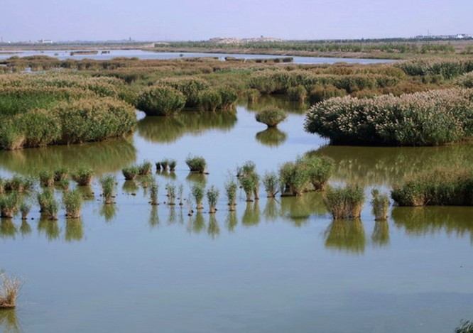 沙湖擁有萬畝水域、五千畝沙丘、兩千畝蘆葦、千畝荷池,盛產(chǎn)魚類、鳥類,這里棲居著白鶴、黑鶴、天鵝等十數(shù)種珍鳥奇禽。你可在觀鳥塔上遙看群鳥嬉戲的場景,在水邊葦桿間、蘆叢底部更有鳥巢無數(shù),每年春季,五顏六色鳥蛋散布其間,堪稱奇觀。