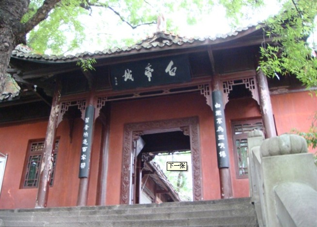 白帝城位于長(zhǎng)江北岸,距奉節(jié)城東約15華里,掩映在郁郁蔥蔥的綠樹叢中,是三峽的西口,入川的門戶。由于地勢(shì)險(xiǎn)峻,古往今來(lái),常為兵家必爭(zhēng)之地。白帝城也是三峽游覽勝地 西漢末年公孫述據(jù)蜀,在山上筑城,因城中一井常冒白氣,宛如白龍,他便借此自號(hào)白帝,并名此城為白帝城。公孫述死后,當(dāng)?shù)厝嗽谏缴辖◤R立公孫述像,
