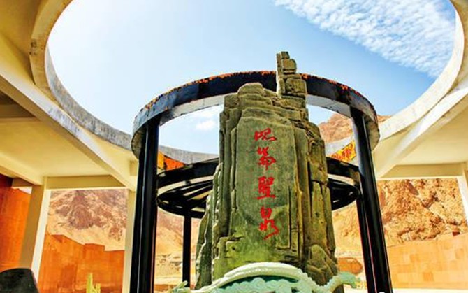 關(guān)于納赤臺清泉的起源,民間流傳一個傳說。相傳當(dāng)年西王母于昆侖山中瑤池之畔宴請諸神,創(chuàng)造神應(yīng)約赴會。版權(quán)所有山東聊城聊之旅國際旅行社有限公司,轉(zhuǎn)載必究!席間,諸神訴功,創(chuàng)造神凡摩表示要將昆侖山之北造成花氆氌之地,讓那里草肥水美牛羊壯,碧野千里飄奶香。西王母聽之,心曠神怡,特饋贈凡摩幾樽瑤池瓊漿。宴罷,凡摩返。途中,凡摩飲興未艾,信手把樽暢欽,不料大醉。金樽擲地,瓊漿四溢。其乘坐的蓮花神龕化為赤臺群山,溢出的瓊漿水為昆侖泉。
