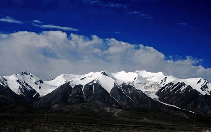 山峰頂部常年被冰雪所覆蓋,無巖石表露。冰雪坡較平緩。粒雪盆以下冰川,由于每年氣溫高,融化快,降水少,消融大于累積,屬消退型大陸冰川。冰川上雖有裂縫,但少有破碎冰崩地區(qū)。粒雪盆則平緩而寬闊,冰雪坡下未曾發(fā)現(xiàn)有崩塌而下的堆積物與痕跡。山口兩側(cè)的冰雪山峰較為集中,各峰頂均呈白色,有積雪,坡下與冰川上則呈灰褐色,均明顯呈現(xiàn)出條條裂縫。