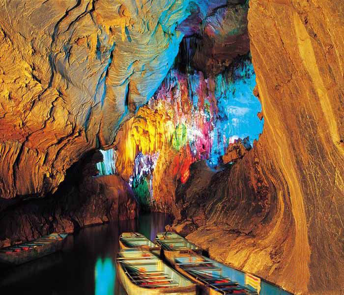 連州地下河位于歷史文化古城連州以北26公里處的東陂鎮(zhèn)大洞村境內(nèi),是一處巧奪天工的亞熱帶喀斯特地貌的典型巨型天然石灰?guī)r溶洞,因為洞口廣闊,仿佛一個大嘴巴,所以當?shù)鼐用穹Q之為大口巖版權(quán)所有聊城聊之旅旅行社有限公司,轉(zhuǎn)載必究!。1986年初探,1988年正式對外開放。它以其神秘瑰麗的石鐘乳及洞穴暗河而馳名中外。連州石鐘乳自古出名,據(jù)《連州志》記載,唐代文學家劉禹錫815年復出任連州刺史時在《連州刺史廳壁記》中贊美連州的石鐘乳:"山秀而高、靈液漉,故石鐘乳為天下甲,歲貢三百珠。"歷代地方官都把石鐘乳作為進貢朝廷的物品。
