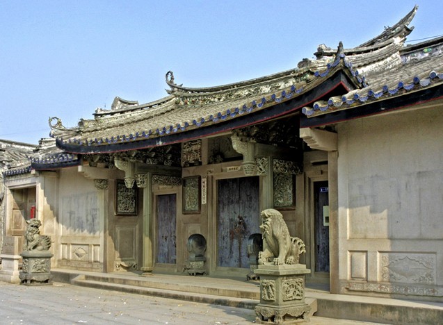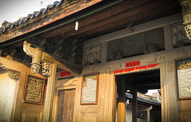 琳瑯滿目的建筑裝飾,使整座建筑物顯得更加富麗堂皇,首進(jìn)門樓前理分置精致石獅一對(duì),門樓屋架為雙面鏤空石雕。而最令人嘆為觀止的還是鑲嵌于門樓石壁上的四幅石雕.這四幅石雕分別以土農(nóng)工商,漁樵耕讀,花鳥(niǎo)蟲(chóng)魚(yú)為題材,每幅石刻都很好地運(yùn)用了“之”字形的構(gòu)圖,將不同時(shí)空的人、事、物集中在同一畫面,濃縮故事情有節(jié)。表現(xiàn)最富戲劇性的瞬間。