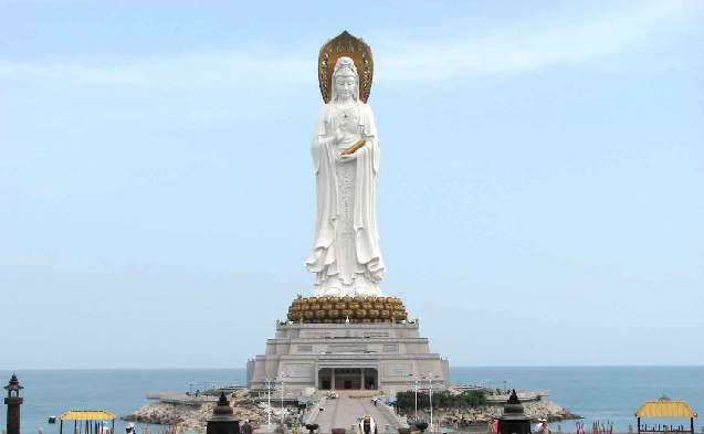 三亞南山海上觀音圣像敬造工程因其規(guī)模宏偉、意義殊勝、佛理底蘊(yùn)豐富,被譽(yù)為“世界級(jí)、世紀(jì)級(jí)”的佛事工程。像體為正觀音的一體化三尊造型,寶相莊嚴(yán),腳踏一百零八瓣蓮花寶座,蓮花座下為金剛臺(tái),金剛臺(tái)內(nèi)是面積達(dá)15000平方米的圓通寶殿。金剛洲由長280米的普濟(jì)橋與陸岸相連,并與面積達(dá)60000平方米的觀音廣場(chǎng)及廣場(chǎng)兩側(cè)主題公園,共同組成占地面積近30萬平方米的“觀音凈苑”景區(qū)。