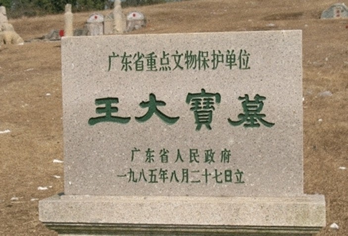王大寶墓位于潮安縣歸湖鎮(zhèn)神前村的神前山,其地俗稱沉江月,占地約4畝,筑于宋乾道六年(1170)。墓地向西,墓碑高約2.3米,楷書陰刻“宋禮部尚書大寶王公墓”。墓前排列著南宋大型石雕群,計(jì)文武翁仲、石獅、石羊、石筍、石望柱、石馬等14件,石雕線條粗?jǐn)U,工藝簡練古樸,反映了南宋的雕刻藝術(shù)水平和風(fēng)格,是廣東省現(xiàn)存為數(shù)不多的大型宋代石雕。1989年王大寶墓被列為廣東省重點(diǎn)文物保護(hù)單位。