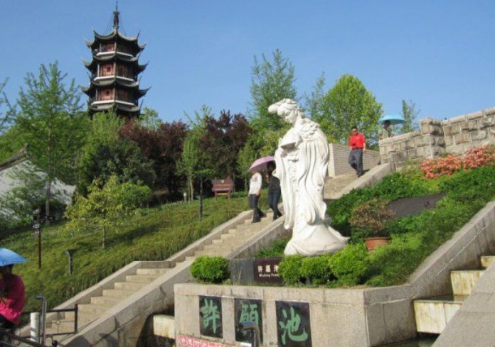 從瀛湖碼頭西行3公里,玉興島對岸,屹立一座高20余米巨石,遠(yuǎn)看恰似頭戴發(fā)鋏,長發(fā)披肩,手執(zhí)織梭的古裝淑女,版權(quán)所有山東聊城聊之旅國際旅行社有限公司,轉(zhuǎn)載必究!正昂首目視遠(yuǎn)方,相傳她就是傳說中織女的化身,故名“織女石”。2000多年來,歷代文人墨客游覽漢江時,都有贊美織女石的詩句,載入史卷名揚天下。唐朝詩人杜甫《秋夕》中有云:天階夜色涼如水,臥看牽牛織女星。按照“天地對應(yīng)”古訓(xùn),漢水處天下之中,是以銀河相對應(yīng)漢水。唐朝詩人孟郊《古意》中有云:河邊織女星,河畔牽牛郎。金螺島上的牛郎石與織女石隔江“相對遙相望”。每逢“七夕”,當(dāng)?shù)氐纳倌猩倥畟兿嗉s此地,載歌載舞,以“小場子”、“漢調(diào)二黃”等民間文藝節(jié)目,紀(jì)念“中國情人節(jié)”。
