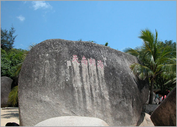 天涯海角游覽區(qū)位于三亞市區(qū)約23公里的天涯鎮(zhèn)下馬嶺山腳下,前海后山,風(fēng)景獨特。步入游覽區(qū),沙灘上那一對拔地而起的高10多米,長60多米的青灰色巨石赫然入目。兩石分別刻有“天涯”和“海角”字樣,意為天之邊緣,海之盡頭。 這里融碧水、藍(lán)天于一色,煙波浩瀚,帆影點點。椰林婆娑,奇石林立,如詩如畫。那刻有“天涯”、“海角”、“南天一柱”、“海判南天”的巨石雄峙南海之濱,為海南一絕。