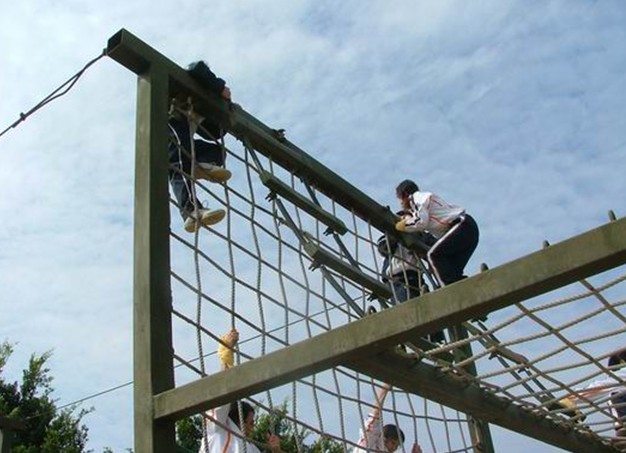 此項目由6根橫碼、軟梯、高空平網(wǎng)、高空豎網(wǎng)、空中高桿等部件組合而成。需要極佳的團(tuán)隊協(xié)作精神,要求全體參訓(xùn)人員必須互相支持、相互配合,相互幫助及互相鼓勵,勇往直前定能出色完成此項目。