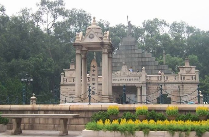 1911年4月27日(農(nóng)歷3月29日),孫中山先生領(lǐng)導(dǎo)的同盟會為推翻清王朝的統(tǒng)治,在廣州舉行起義,結(jié)果失敗,喻培倫等86人(一說100余人)英勇犧牲,其中華僑29人。同盟會會員潘達(dá)微,冒著生命危險把散落的七十二烈士遺骸收殮安葬于紅花崗(后改名“黃花崗”,黃花即菊花,比喻節(jié)烈),史稱“黃花崗七十二烈士”。黃花崗墓園始建于1912年,至1921年烈士墓和紀(jì)功坊先后落成。孫中山書“浩氣長存”四字鐫于墓坊。入門是寬敞的墓道,長200米。烈士墓構(gòu)筑在崗陵之上,居于墓臺當(dāng)中,紀(jì)功坊峙立墓后。墓道兩旁蒼松翠柏,烘托出滿園黃花輝映碧血的莊嚴(yán)肅穆氣氛。南墓道為碑林,鐫刻有“自由魂”“精神不死”等碑文,字字語重千鈞。兩條3米多高的連州青石透雕龍柱,夾道相對。