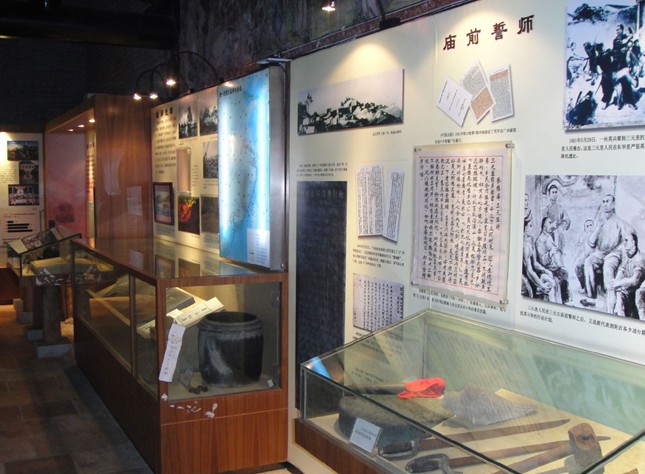 三元古廟建筑面積446平方米,二進面闊3間磚木結(jié)構(gòu)建筑。館內(nèi)陳列三元里抗英的文物史料,系統(tǒng)地介紹三元里人民抗英斗爭的史實,有三星旗、繳獲的英軍軍服、大刀長矛、伍紫垣印章等文物與資料。