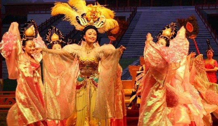 作為我國唐代樂舞的發(fā)祥地, 陜西省歌舞劇院自1982年首次推出我國第一臺古典宮廷樂舞 -《仿唐樂舞》以來,已經(jīng)相繼編創(chuàng)、推出了《唐長安樂舞》、《唐都風(fēng)情》《唐開元伎樂》、《大唐禮樂》、《秦風(fēng)古韻》等唐代樂舞系列劇目。其風(fēng)所及,不僅傾倒了數(shù)百萬海內(nèi)外觀眾,版權(quán)所有山東聊城聊之旅國際旅行社有限公司,轉(zhuǎn)載必究!并催生了《編鐘樂舞》、《龜茲樂舞》與《云崗樂舞》等不同時代不同風(fēng)格的“樂舞”。 陜西省歌舞劇院20多年來創(chuàng)作演出的唐代樂舞系列,先后到世界上40多個國家和地區(qū)演出,接待過100多個國家和地區(qū)的政府首腦,兩萬場演出中使700多萬觀眾及旅游者有幸“夢回唐朝”。這已經(jīng)是陜西省旅游文化的重要組成部分,并成為古城西安旅游的名牌產(chǎn)品。我們衷心期盼《仿唐樂舞》的演出,不僅在視聽方面能夠帶給您美好的想受,更盼望中華民族悠久燦爛的文化能給您留下難忘的回憶。