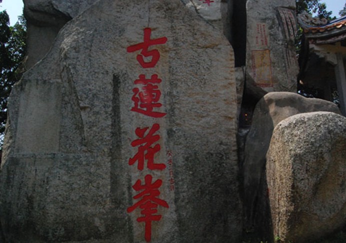 公元一二七八年,南宋民族英雄文天祥率領(lǐng)義軍,追蹤十歲小皇帝趙炳至潮陽蓮花峰,在此登峰望帝,眺望茫茫大海,極目尋望帝舟蹤影,帝舟片影無蹤。山峰是由幾片縱裂的花崗巖石拱圍拼湊而成,從陸上遠眺儼然若一朵含苞待放的蓮花,從海上觀之,則仿佛是一朵出水芙蓉,故文天祥將該峰命名為“蓮花峰”并刻石。還有許多名人石刻,其中有黑旗軍將領(lǐng)劉永福的草書“虎”字、書法家于右任和劉海粟等的題字等。現(xiàn)代作家老舍也在這里題詩曰:“遙憐信國此峰頭,水黑云寒望帝舟;今日紅旗明碧海,神州兒女競風流。”