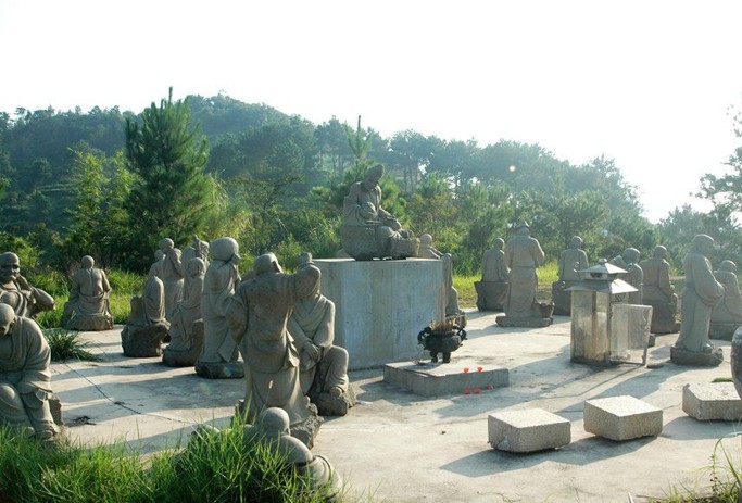 在千手觀音像的東側,五百羅漢大型群雕塑像更是一大景觀。馬尾松林掩映的半山腰處,五百尊與真人一般大小、栩栩如生的石雕羅漢,通布山崗。或蹲、或站、或仰首、或凝思、或開額,動的、靜的,相顧者。交談者,喜、怒、哀、樂形志不一,神情各異。傳統(tǒng)的羅漢雕塑均是陳列于廟宇中,版權所有山東聊城聊之旅國際旅行社有限公司,轉載必究!而此處的五百石雕羅漢則回歸自然,與青山綠水為伴,神話與人間景象交融,別有一番情趣。