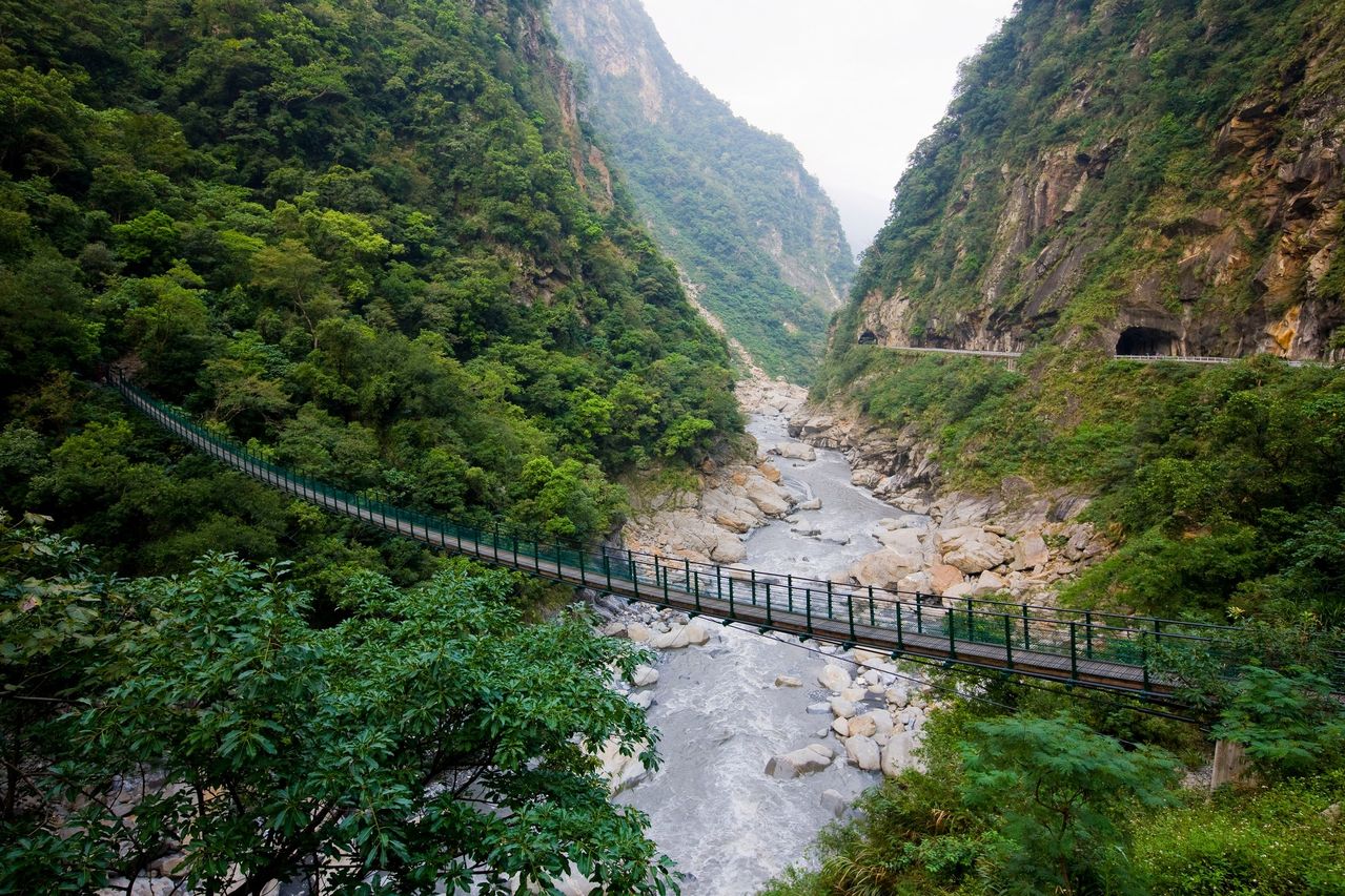 太魯閣峽谷為臺灣花蓮縣自太魯至天祥之間20千米的大峽谷。沿線山嶺,高入云霄,谷深莫測,溪流蜿蜒,飛瀑似簾,景色奇絕。谷內(nèi)勝景有長春祠、九曲洞、天祥等。附近還有建筑宏偉的德祥寺、七層天峰塔、孟母亭、普渡吊橋等。