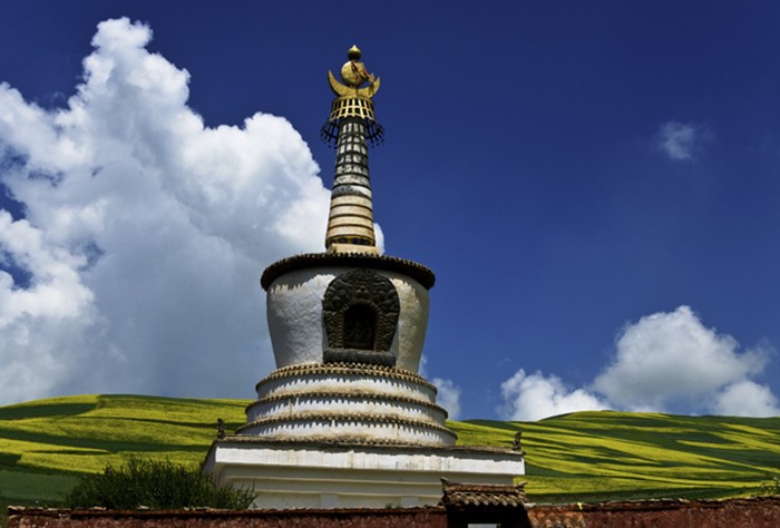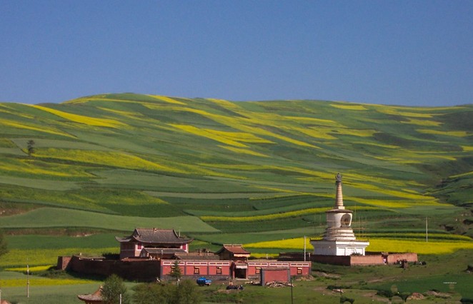 佑寧寺的建筑風(fēng)格融合了土族、藏族、蒙古族和漢族的藝術(shù),寺中的雕塑與繪畫(huà)藝術(shù)的價(jià)值很高。再加上學(xué)風(fēng)濃厚,三世章嘉•若貝多杰活佛,三世土觀•羅桑吉尼瑪活佛,三世松巴•益希班覺(jué)活佛都是著名的學(xué)者,可謂名僧輩出。了解了佑寧寺的滄桑歷史之后,就讓筆者帶座深山古寺去一探究竟吧。經(jīng)過(guò)數(shù)十公里崎嶇山路的顛跛,想必性急的您—定已經(jīng)有種急于朝拜圣地的沖動(dòng)了吧。依山傍水的佑寧寺雖然經(jīng)歷了戰(zhàn)火的無(wú)情摧殘,但數(shù)百年的歲月已經(jīng)把當(dāng)年的硝煙沖刷得一干二凈,寺院與山體層疊交錯(cuò),渾然一體。寺前的白塔在山間嫩黃的油菜花的襯托下顯得無(wú)比雄武,古樹(shù)、佛殿交相呼應(yīng),更顯寺院的威武莊嚴(yán)。這里最佳的旅游季下是每年的農(nóng)歷正月、四月、六月及臘月。版權(quán)所有山東聊城聊之旅國(guó)際旅行社有限公司,轉(zhuǎn)載必究!因?yàn)閷脮r(shí)寺院將舉行較大規(guī)模的法會(huì),熱鬧非凡。由于身處土族聚居的互助縣,這里的僧侶幾乎全部是土族,對(duì)于篤信喇嘛教的土族來(lái)說(shuō),到寺院”經(jīng)聽(tīng)法是新年里一等一的大事。每年的正月初二,寺山將舉行為期十五天的祈愿法會(huì)。