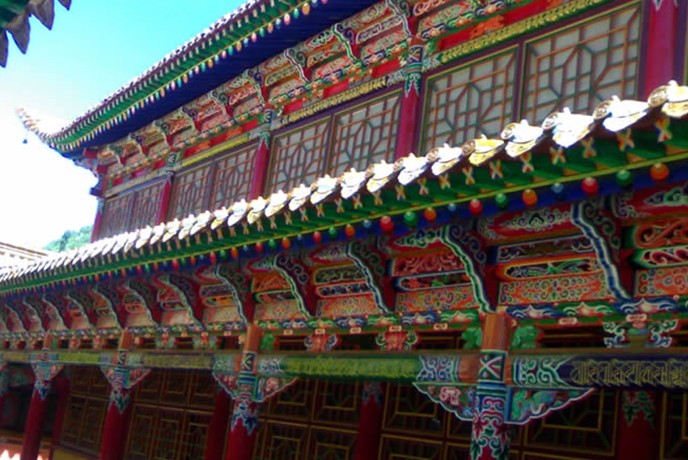 可是到了雍正二年,因?yàn)閰⑴c了羅卜藏丹津反清叛亂,宏偉的寺院竟然被官軍付之一炬,寺內(nèi)僧人死走逃亡。盡管在雍正十年,皇帝為了重當(dāng)?shù)乩?dāng)?shù)乩锝潭囊庠福鏅?quán)所有山東聊城聊之旅國(guó)際旅行社有限公司,轉(zhuǎn)載必究!欽命宣修寺院,并賜額“佑寧寺”。但這座可與任何恢宏寺院比肩的佛教圣寺再也沒(méi)有恢復(fù)年的規(guī)模。在空前絕后的“文革”中,這座古寺再次被焚毀,這一次比雍正年間那次兵火更加徹底,寺內(nèi)文物幾乎蕩然無(wú)存。現(xiàn)在,經(jīng)過(guò)小規(guī)模修復(fù)的寺院只剩下稀稀落落的數(shù)十間院落和并不能稱(chēng)為宏偉的幾座經(jīng)堂散處于山谷間,在北山林場(chǎng)的映襯下自在場(chǎng)然,似乎依然在回味著數(shù)百年來(lái)的那兩場(chǎng)令人心酸的大火所帶來(lái)的凄涼悲慘。
