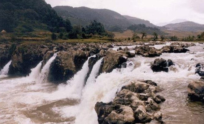 猴橋是史迪威公路跨越檳榔江鐵索橋的傈僳族集居村,原名猴子橋。因古代系一條藤索懸垂兩岸之間,旁牽兩條手扶藤索,再以細(xì)藤纏繞,以供行人踩獨繩過江,手足并用如猴攀緣,便以橋而命地名,檳榔江進(jìn)入猴橋地域后,先以陡峻之勢,自奔現(xiàn)在中緬公路鋼索吊橋,過橋之后漸趨平緩,而向下流瀉去,又再進(jìn)人人跡罕至的崇山峻嶺之中。在這段檳榔江的江心江岸,成百上千的巨石或如牛躺臥,或如獸蹲伏,夏日洪水滾滾而過,便激起掀天的怒濤,聲若雷霆。而冬春時節(jié)江水潺潺,清可見底。