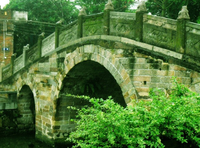 該橋兩邊斜道不砌石級(jí),版權(quán)所有山東聊城聊之旅國(guó)際旅行社有限公司,轉(zhuǎn)載必究!行人來往象上下斜坡一樣,古代車馬過橋,可暢通無阻。站在橋上左右眺望,寬闊的河涌?jī)砂叮R的石砌墻緊靠河壁。蕉林蔗地上,舊日店鋪基礎(chǔ)依稀可辨,為我們勾勒出一幅繁榮的古代水鄉(xiāng)市集景象。
