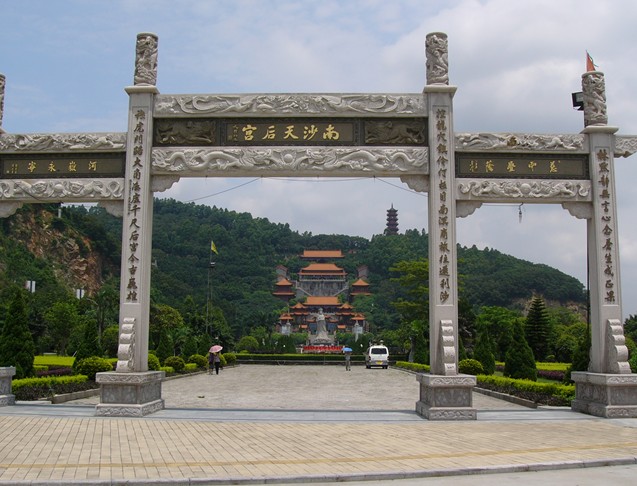 南沙天后宮,緊臨珠江出海口伶仃洋,坐落于大角山東南麓,依山傍水,其建筑依山勢層疊而上,殿宇輝煌,樓閣雄偉,在天后廣場正中就是石雕天后圣像,是為紀(jì)念海上女神林默而建,建筑特點(diǎn)是集北京故宮的風(fēng)格和南京中山陵的氣勢于一體,其規(guī)模是現(xiàn)今世界同類建筑之最,被譽(yù)為“天下天后第一宮”,也是東南亞最大的媽祖廟。天后圣像高達(dá)14.5 米,屹立在天后宮廣場正中。