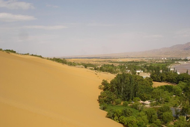 沙坡頭的北面是浩瀚無際的騰格里大沙漠,而南面是一片郁郁蔥蔥的沙漠綠洲。騎著駱駝在沙漠上走走,領(lǐng)略一下大漠風(fēng)情,別有一番味道。