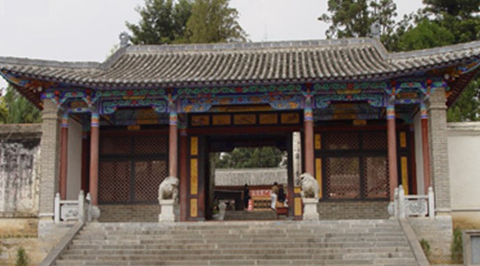 繞頂寺,建于海拔2450米山巔,是化佛山最高寺院,因常有云霧繚繞,故又名云頂寺。建于清乾隆四年(1739年),規(guī)模不大,但建于陡坡,靠近頂峰,飽覽群山泛野,煙波浩淼,看云海,聽松濤,景色獨(dú)好。現(xiàn)址存古茶花1株。