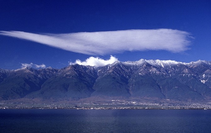 蒼山云景變幻萬千,其中最有名的是“望夫云”和“玉帶云”。望夫云每年冬春季節(jié)常出現(xiàn)于玉局峰頂,這云出現(xiàn)后洱海隨即狂風(fēng)大作掀起陣陣驚濤駭浪,漁船不能出海,因此望夫云又被稱為“無渡云”。玉帶云不僅嫵媚動人,而且按白族農(nóng)諺所說,她還是豐收的預(yù)兆:“蒼山系玉帶,餓狗吃白米”。