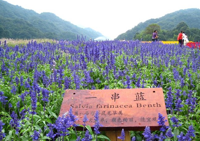 這里沒有窒息的空氣,沒有呆板的布景,只有自由的山風(fēng)吹動婚紗飄動,只有靈動的光影定格愛情的永恒。花海、紅葉、青山、碧湖、竹林、溪流、棧道、幽谷,每一處景點都可成為最美的拍攝背景。在7月,最讓新人流連的是“天池花海”的美景。
