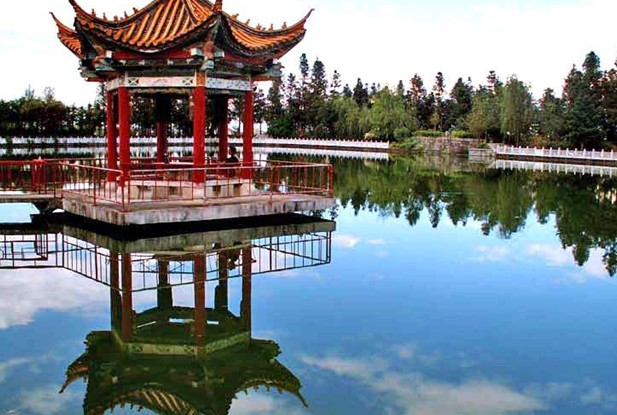 公園始建于80年代,建筑面積7畝,其中心是一泓近10多畝的水潭。池邊廣植銀樺、雪松、垂柳等,四周有藤架、大理石桌凳、大理石長欄,小溪繞潭。水池西側(cè)有大理碑亭,過亭沿曲廊行數(shù)米,可達水中的漾波亭。版權(quán)所有山東聊城聊之旅國際旅行社有限公司,轉(zhuǎn)載必究!漾波亭南側(cè)有一小島,島上塑有一對栩栩如生白鶴,水中倒影,人動影移與漾波亭相映成趣。