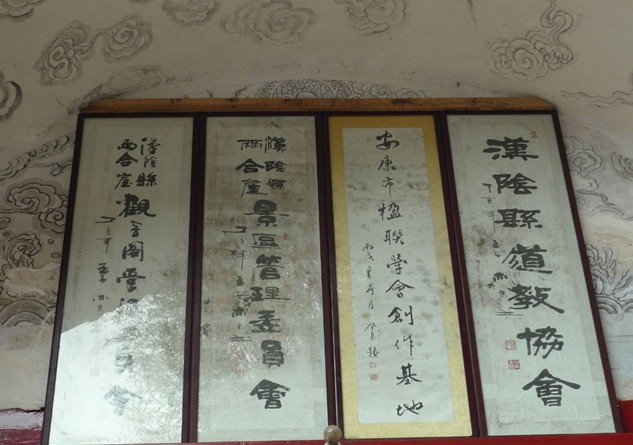 循山而上,廟依山崖,飛檐層疊。沿樵夫小徑通往山腰,只見一片翠綠,嬌艷欲滴,環(huán)抱遍野山菊,相應(yīng)成輝,妙趣天成。坐“陶然亭”小憩,細(xì)細(xì)體味著隱士陶淵明“采菊東籬下,悠然見南山”的怡然自得。亭壁“六龍馭穹蒼,文星射斗牛”的楹聯(lián),激揚(yáng)文字,豪情沖天,彰顯藏龍臥虎的磅礴氣勢。