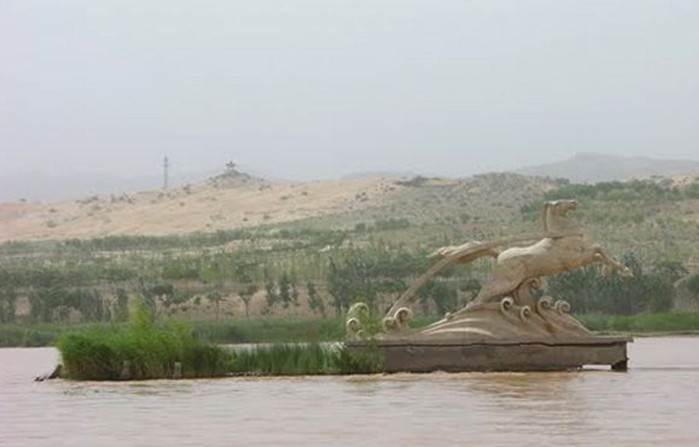 中衛(wèi)市城區(qū)有一條最古老的引水渠叫“美利渠”,它的引水原理是在河心筑堤引水,因此被稱為寧夏的“都江堰”。河水撞擊在10里引水長(zhǎng)堤上,但見(jiàn)浪花飛濺,恰似白云翻飛,遠(yuǎn)遠(yuǎn)望去,宛如一匹白馬拖著長(zhǎng)長(zhǎng)的韁繩馳騁在黃河之中,這便是中衛(wèi)古八景之一的“白馬拉韁”。