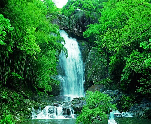 天臺山優(yōu)美的自然景觀,展現了秦嶺山脈雄偉博大的氣魄,可謂“平疇突起三千尺”、“氣壓昆侖天柱矮”;濃縮秦嶺山脈風光于一處,具有峻峰、幽谷、翠綠、碧水四大風景特色。峻峰:天臺山重巒疊嶂,峭壁對峙,群山萬壑之間,云霧迷漫,氣象萬千。風景區(qū)內的天臺蓮花峰、天柱峰、寄馬峰、人頭峰、神農峰、雞峰山、大散嶺等山峰均為花崗巖峰林地貌,群峰爭雄,凌空險峻。天臺山溝壑眾多,崖峻谷深,林木蔽日,使人置身于“嵐光晴亦靄,樹色郁猶蒼”“偶聞松濤聲,卻是萬籟靜”的境界。不少深谷至今人跡罕至,奧秘莫測。天臺山林海茫茫,群峰巨石隱于蒼松翠柏之中,組成一幅幅色彩斑斕的自然畫面。天臺山水量豐富,河、湖(水庫)、溪、瀑、潭、泉俱全,山環(huán)水繞,縱橫交錯,水質潔凈,碧波蕩漾。