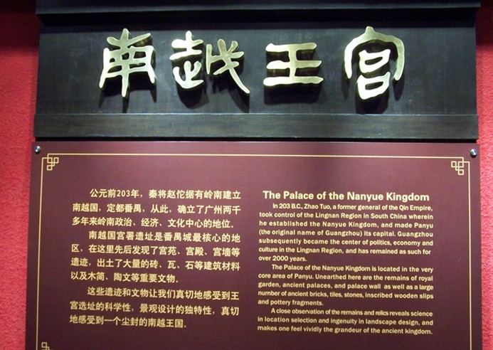 1995年、1997年在廣州北京路與中山四路交會處,發(fā)現(xiàn)了兩千年前趙佗建立的南越王宮署遺址。南越國宮署御苑中的大型石構(gòu)水池和曲流石渠設(shè)計之獨特,構(gòu)筑之精巧,規(guī)模之宏大,令人贊嘆不已。這處遺址先后兩次被評為全國十大考古發(fā)現(xiàn)。據(jù)悉這是中國迄今發(fā)現(xiàn)最早的御苑遺址,對研究古代建筑、古代園林和南北民族融合的歷史有重要的價值,是中國文化瑰寶,為廣州歷史名城精華所在。