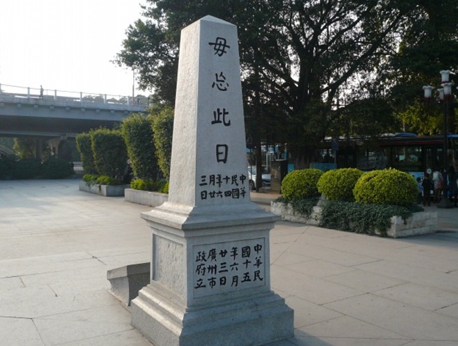 1925年,香港、廣州工人為聲援上海“五卅”反帝運動,于6月19日和21日分別舉行大罷工。英、法等國派軍艦以武力威脅。6月23日,廣東各界群眾10萬余人在東較場舉行援滬案示威大會。午后游行,隊伍到達沙面租界對岸的沙基時,租界的帝國主義軍隊開槍掃射群眾,軍艦開炮助威,釀成死52人、重傷170多人、輕傷無數(shù)的慘案。慘案發(fā)生后,各界群眾團體、國民黨中央執(zhí)行委員會、廣東省政府紛紛抗議英、法等帝國主義的罪行。廣東交涉署復(fù)英、法領(lǐng)事照會,提出5項嚴正要求。7月11日,廣州10萬民眾公祭沙基烈士。當年立“毋忘此日”石牌,版權(quán)所有山東聊城聊之旅國際旅行社有限公司,轉(zhuǎn)載必究!1950年改建為“沙基慘案烈士紀念碑”。此碑現(xiàn)為廣州市文物保護單位。