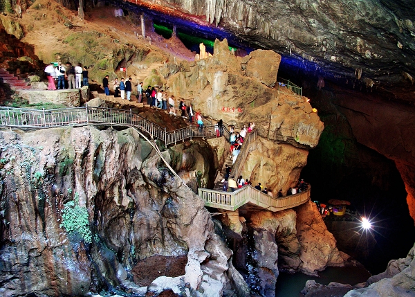九鄉(xiāng)風(fēng)景區(qū)是云南省新興的,以溶洞景觀為主,洞外自然風(fēng)光、人文景觀、民族風(fēng)情融為一體的綜合性風(fēng)景名勝區(qū)。九鄉(xiāng)風(fēng)景區(qū)擁有上百座大、小溶洞,為國內(nèi)規(guī)模最大、數(shù)量最多、溶洞景觀最奇特的洞穴群落體系 [1-2]九鄉(xiāng)的另一特點(diǎn)是這里的水非常美,既有可泛舟而行的2公里長(zhǎng)的暗河溶洞,又有瀑布濺流,還有兩壁峭立,水翠天青的峽谷河道。在這里借船一行,很能領(lǐng)略大自然的靜謐與神韻。