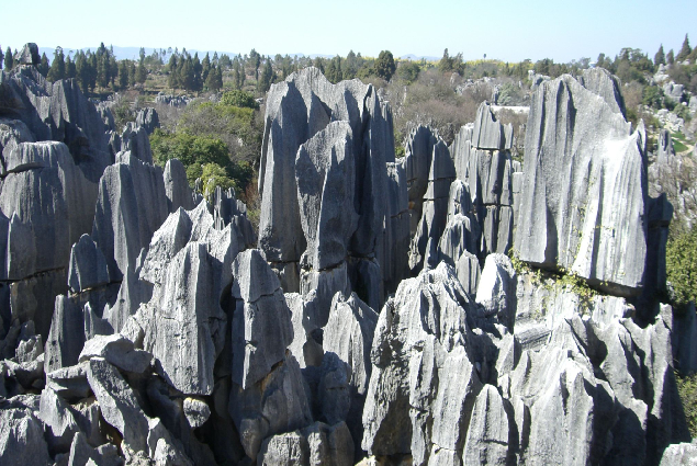 石林位于昆明市東,是世界罕見(jiàn)的風(fēng)景名勝,是大自然鬼斧神工的杰作。在路南廣達(dá)400平方公里的區(qū)域內(nèi),遍布著上百個(gè)黑色大森林一般的巨石群。有的獨(dú)立成景,有的縱橫交錯(cuò),連成一片,占地?cái)?shù)十畝,上百畝不等。最典型的一片叫李子營(yíng)石林,只見(jiàn)奇石拔地而起,參差峰巒,千姿百態(tài),巧奪天工,被人們譽(yù)為“天下第一奇觀”。