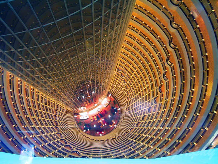 全國首批4A旅游景點(diǎn)金茂大廈88層觀光廳,是目前國內(nèi)最高最大的觀光廳,榮膺上海大世界基尼斯之最。兩臺(tái)每秒運(yùn)行9.1米的垂直升降電梯一次可乘載33位旅客,只需45秒鐘可將游客從地下一層直送88層。登高遠(yuǎn)眺,版權(quán)所有聊城聊之旅國際旅行社有限公司,轉(zhuǎn)載必究!大上海的景觀盡收眼底,浦江兩岸高樓林立,黃浦江上百舸爭流,您可親身體驗(yàn)"落霞與孤鶩齊飛,秋水共長天一色" 的美景。賞完外景,您還可以從上往下觀賞世界舉世無雙的酒店中庭,它直徑27米,28道環(huán)廊扶手在霓虹燈的照射下,金光閃閃。一道道環(huán)廊如同一排排畫廊,美不勝收。此情此景,無不激動(dòng)人心,您會(huì)不由自主地拿起照相機(jī)留下永恒的紀(jì)念。金茂大廈無與倫比的酒店中庭被建筑師、科學(xué)家、文學(xué)家譽(yù)為“共享空間”、“金色的年輪”、“時(shí)空隧道”。