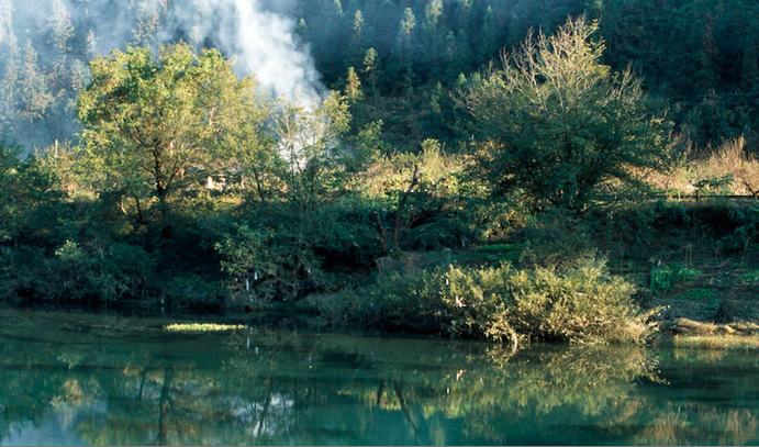 大山村有王村、李村和洪村三個(gè)村民組,其中王村所在的地方尤為奇特,他們倚山結(jié)廬,世代以種茶為生。村口一棵甜櫧,680年,蔥蘢如蓋。村子四面環(huán)山,像安臥在搖床里的嬰兒。東南面有一叢古樹(shù),天然一處入風(fēng)口,光線(xiàn)也通透,遠(yuǎn)處層巒疊嶂,云霧常年繚繞,而西北面則有一個(gè)天然的出風(fēng)口,我們先前感受到的暖流氣息,很可能就是從這個(gè)出口散出去的。