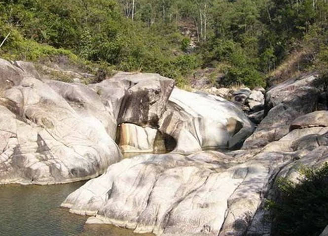 良田河深入8、9公里,那莽莽蒼蒼的原始次生林遮天閉日,深邃的峽谷亂石層層疊疊,又被溪水沖刷得千瘡百孔。這里既有花崗石因垂直節(jié)理發(fā)育而形成的如劍劈斧砍的裂縫,又有花崗石特有的球狀風(fēng)化形成的石蛋,也有流水夾帶礫石沖刷巖體形成的甌穴。