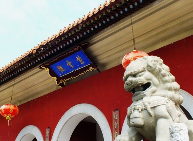 遠(yuǎn)望這座仿古建筑群,流光溢彩,氣勢非凡。門前有6000多平方米的停車場,室外的地面砌花崗巖石,綠樹紅花點綴其間。版權(quán)所有山東聊城聊之旅國際旅行社有限公司,轉(zhuǎn)載必究!進(jìn)入山門后,兩邊分別是鐘樓和鼓樓,中間有一座漢白玉石雕砌的會仙橋。各建筑物的梁柱和走廊間繪制了許多花鳥、山水、人物圖畫,體現(xiàn)了濃厚的文化品味。宮觀內(nèi)各殿堂安坐的神像有靈官護(hù)法、玉皇大帝、三清道祖、呂洞賓仙師、黃大仙、斗姆、六十太歲、關(guān)圣帝君、北帝、李涵虛祖師、觀音大士、天后、龍母等九十多尊。神像雕塑,道骨清相,神態(tài)逼真,形象慈祥、威嚴(yán)、端莊。