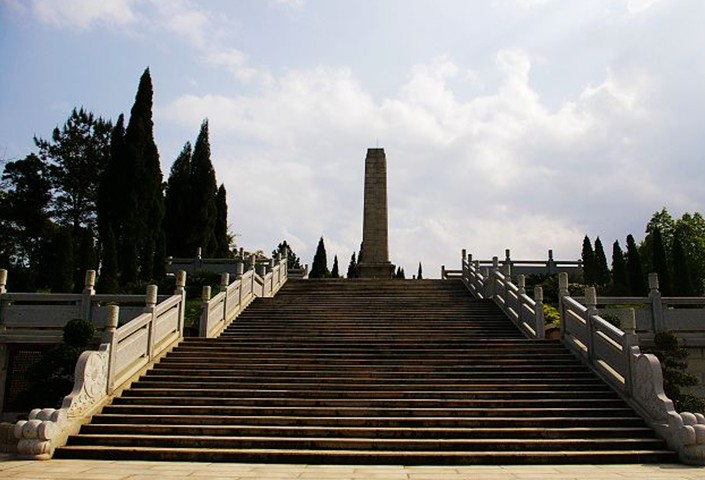 來(lái)到筆枝山頂,“八一”南昌起義軍三河壩戰(zhàn)役烈士紀(jì)念碑就展現(xiàn)在我們面前。這座山,居高臨江,地勢(shì)險(xiǎn)要,易守難攻,總面積達(dá)18萬(wàn)平方米,占據(jù)了筆枝山就等于控制了韓江的交通。溯汀江北上,可到福建長(zhǎng)汀、上杭;沿梅江西航可到江西贛南一帶;沿梅潭河?xùn)|往可到福建閩南的九峰等地;順韓江而下直通潮州、汕頭。舊稱“西通兩粵、北達(dá)兩京”,大家說筆枝山的位置重不重要啊?“八一”起義軍三河壩戰(zhàn)役便是在這座山上激烈開展的。為了紀(jì)念革命先輩的豐功偉績(jī)和這次戰(zhàn)役犧牲的烈士,1963年12月廣東省人民政府撥款興建了紀(jì)念碑,碑高15米,用35種規(guī)格的343塊密紋花崗石砌建而成。碑正面鐫刻著朱德同志的親筆題字:“八一”起義軍三河壩戰(zhàn)役烈士紀(jì)念碑。碑座上刻著第二十五師師長(zhǎng)周士第撰寫的碑文。如今“八一”起義軍三河壩戰(zhàn)役烈士紀(jì)念碑已被列為國(guó)家級(jí)革命烈士紀(jì)念遺址重點(diǎn)保護(hù)單位、省級(jí)文物保護(hù)單位,并成為梅州市、大埔縣愛國(guó)主義教育、革命傳統(tǒng)教育的基地。