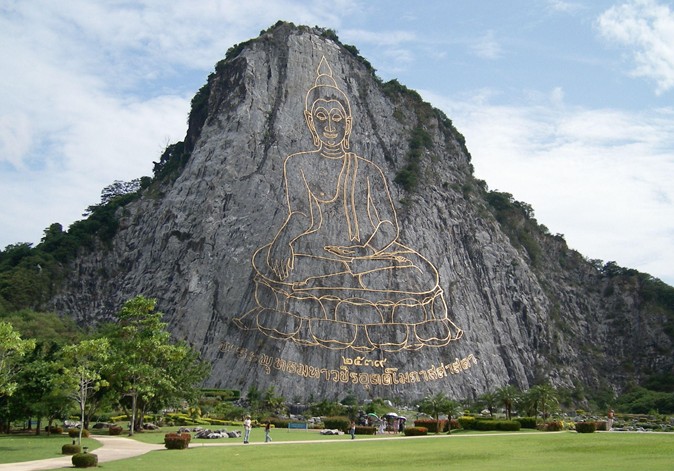 七珍佛山是為了慶祝泰皇登基50周年紀(jì)念,特別用雷射雕刻一座釋迦牟尼佛的神像,