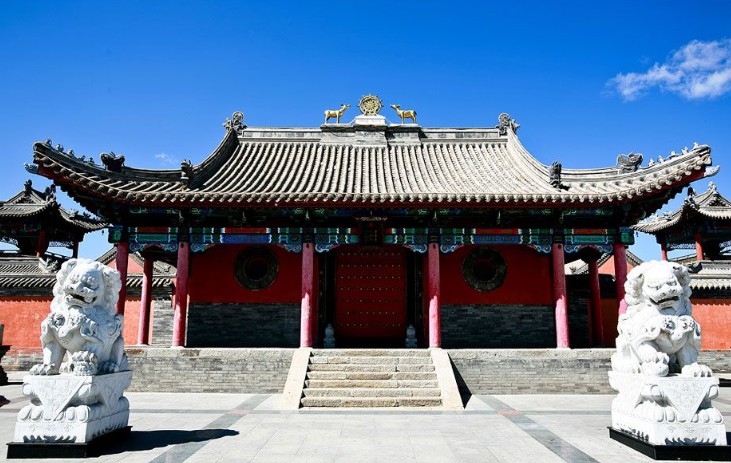 貝子廟是內(nèi)蒙古四大廟宇之一。位于錫林郭勒盟錫林浩特市北部的“額爾敦陶力蓋”敖包南坡下,蒙古語名“班智達(dá)葛根廟”,漢名“崇善寺”。貝子廟是藏傳佛教圣地。它的規(guī)模,歷來被稱為錫林郭勒盟地區(qū)第一大寺,是錫林郭勒盟佛教文化的一大寶庫,享有“北國名剎”聲譽(yù)。貝子廟周邊水草肥美,風(fēng)光秀麗。圣潔的錫林河水在貝子廟西邊,由南向北緩緩流去,如今它的兩側(cè)是繁華市區(qū)。貝子廟的遠(yuǎn)處是以錫林河畔為主的肥沃草地及連綿的群山。相傳,當(dāng)年選擇的廟址為一塊吉祥寶地。