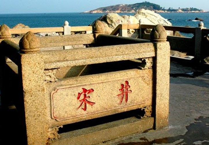 宋井在南澳縣南澳島云澳鎮(zhèn)海灘上,相傳共有“龍井”,“虎井”,“馬槽”三口,三井位置不同,井口各異,顯現(xiàn)時(shí)間也不一樣,據(jù)最近“馬槽”顯現(xiàn)觀察,井口呈現(xiàn)方形,周長3.6米,四周用多層長石條砌成。井水甘甜清爽,常年流通不息。宋井位于海灘上,離大海距離僅十?dāng)?shù)米,常被海潮掩沒,但是潮退之后井水不帶咸味,水質(zhì)清純甘甜,久藏而不變質(zhì)。
