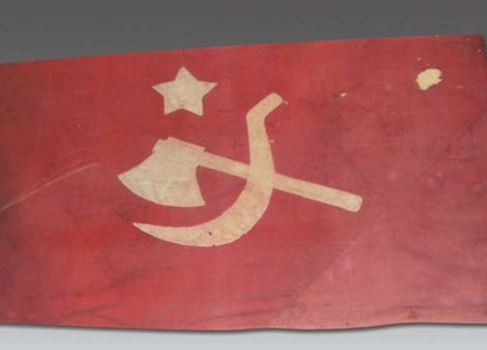 海豐農(nóng)民運(yùn)動在彭湃同志的帶領(lǐng)和中國共產(chǎn)黨的領(lǐng)導(dǎo)下,取得了很大的成就,于1927年11月建立了全國第一個蘇維埃政權(quán)——海豐縣蘇維埃政府。該旗為1927年蘇維埃時期的黨旗,是我黨較早的一面旗幟。