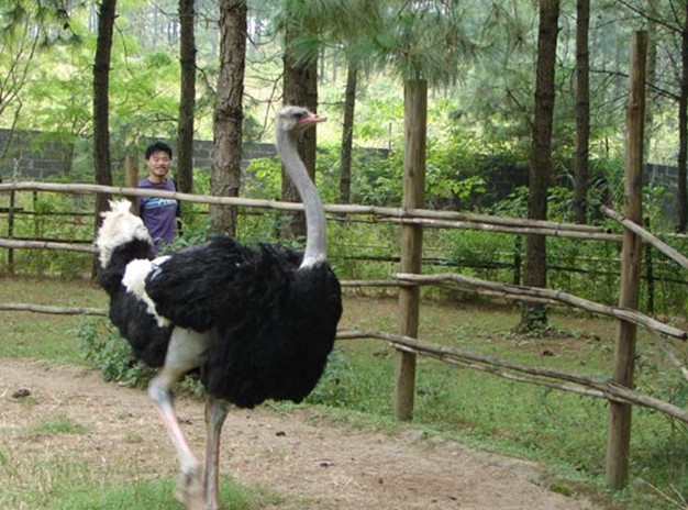 粵北韶關(guān)乳源瑤族自治縣位于美如瑞士山的南嶺南麓丘陵山區(qū),這里終年氣候溫和,塵污不染,一片青蔥翠綠,澗水成濤,野生動植物竟相斗艷,是大自然處女寶地,二十世紀(jì)末,這個原始寶地成功孕育了一批南非鴕鳥新移民,融合在瑤族風(fēng)情文化社會里,人們稱它為鴕鳥瑤寨。
