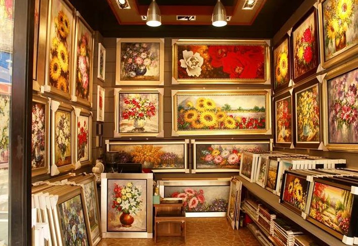 以油畫為主,國(guó)畫書法及其他工藝品為輔。版權(quán)所有山東聊城聊之旅國(guó)際旅行社有限公司,轉(zhuǎn)載必究!大芬油畫村除了油畫之外,還包含有其他藝術(shù)門類的經(jīng)營(yíng),如國(guó)畫、書法、雕塑、刺繡、漆畫、景泰藍(lán)等等。在總體的776家門店中,從事油畫經(jīng)營(yíng)的有583家,從事國(guó)畫、書法創(chuàng)作和銷售的有53家,從事畫框、顏料等相關(guān)配套產(chǎn)品經(jīng)營(yíng)的有73家,從事工藝、雕刻、刺繡、裝飾、噴繪及書畫培訓(xùn)的共有67家。