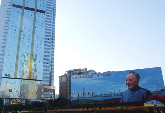 畫像下面附有《鄧小平與深圳》的巨幅文字介紹。現(xiàn)版畫像的規(guī)格為高10.35米,寬30.47米。