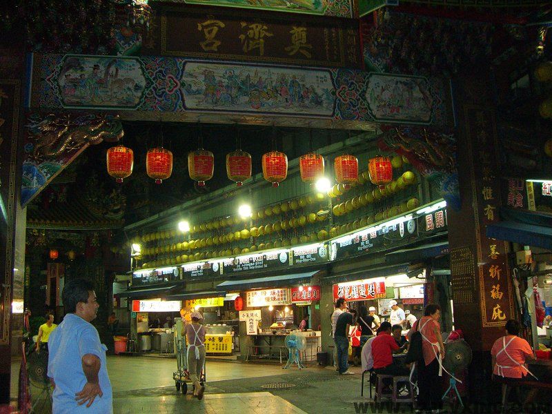 基隆廟口的小吃最早可溯源至日據(jù)時代,而今日『廟口』已成為眾所周知的觀光地點,基隆廟口因位于俗稱『圣王廟』的『奠濟宮』前而得名;奠濟宮建于公元1873年,迄今已有100多年的歷史,是名副其實的百年古剎;奠濟宮供奉的是開漳圣王,是唐朝的陳元光將軍,開漳圣王是河南人,在公元686年奉命平定閩粵有功,因此死后封為開漳圣王;當(dāng)時由基隆地方士紳白番,有濟堂連新永、自楊傳等購買外木山十多頃田地為廟產(chǎn),以木料建廟其上,但是后來由板橋望族林本源等捐獻現(xiàn)在仁愛區(qū)王田里的土地再由地方士紳張金發(fā)及賴武等人捐款,并獲得地方熱烈響應(yīng),入廟后可見排列整齊的紅色大石柱,上面刻有敬神對聯(lián),正殿主神前的花鳥石柱則是日治時期建的,因為日人崇尚花鳥之故,龍柱則是第二次世界大戰(zhàn)所造,展現(xiàn)了中國寺廟的風(fēng)格特色。