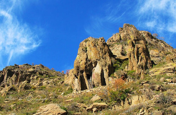 蘇木山之雄奇,首先在天那怪石嶙峋,形態(tài)各異的山巖巨石。登臨絕頂,縱眼四望,細究山形,有的酷似羅漢張臂喜迎賓;有的如同金龜伸頭探碧海;有的宛如擎天柱,渾圓挺拔入云霄。面對那形象逼真的“情人石”,不禁引發(fā)“頭靠身依情切切,恩愛情第度千年”的幽幽暇思。