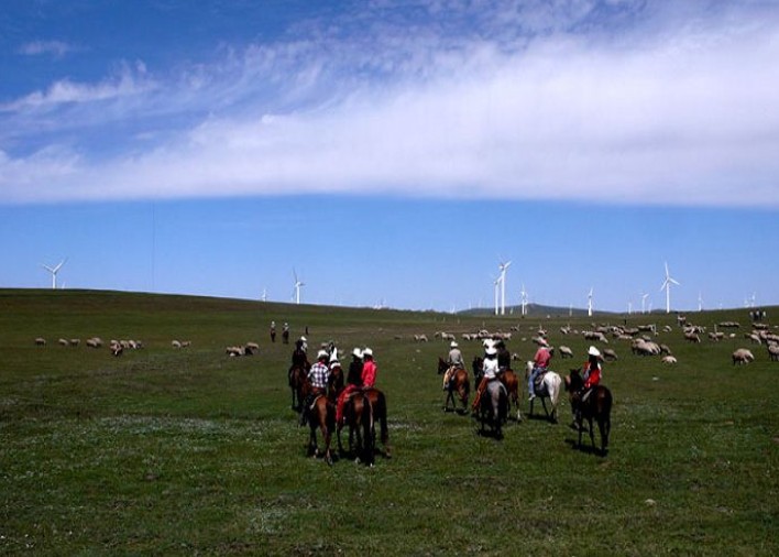 內(nèi)蒙古輝騰錫勒鐵騎旅游中心,位于烏盟中南部輝騰錫勒草原上,距呼市93公里,占地面積1000畝。鐵騎旅游中心目前已建碭項目有:大、中、小型蒙古包,一次可接待游客400人。另外,鐵騎旅游中心,背靠雄偉壯麗的內(nèi)蒙古風(fēng)力發(fā)電機群,形成了獨具特色的蒙古族風(fēng)味的現(xiàn)代化草原旅游景區(qū)。距草原旅游風(fēng)景區(qū)黃花溝僅7公里。