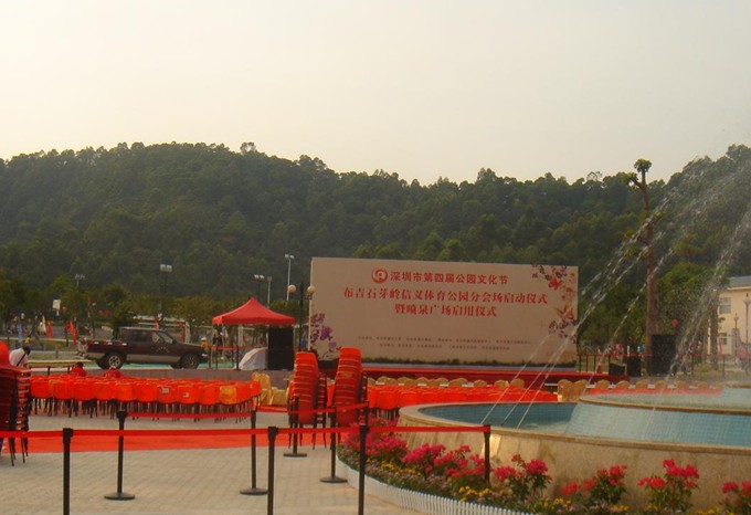 布吉公園的大門是一座頗具中國(guó)特色的建筑牌坊,分為左、中、右三個(gè)門,左右邊兩旁門較小,中門高大聳立,上書“布吉公園”四個(gè)大字。進(jìn)入布吉公園正中是一處空地,空地進(jìn)去,跨過(guò)小橋是一座頗大的涼亭和樓臺(tái),湖水環(huán)繞過(guò)涼亭和樓臺(tái),往左是一處面積頗大的人造湖,可供游人“劃小艇”,再往上就是一座山丘,山丘頂端是一座三層高的“望亭”,可遠(yuǎn)眺整個(gè)布吉,也是整個(gè)公園的中心地帶。